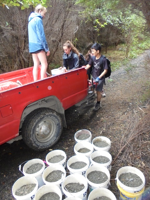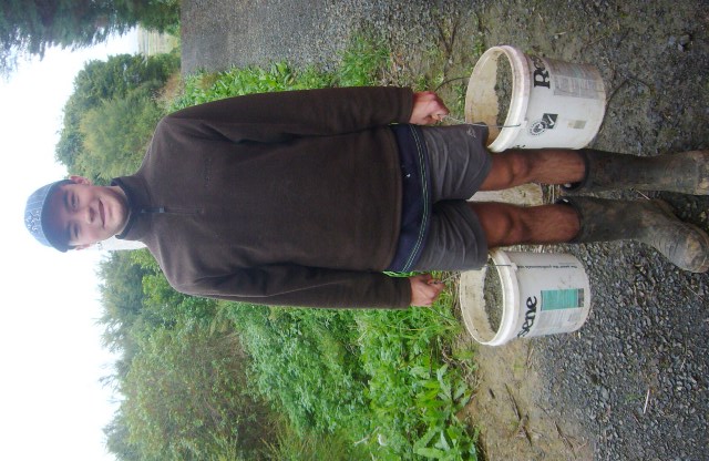 We loaded the buckets into the ute and drove to the nearest spot and then carried the buckets down to the track.