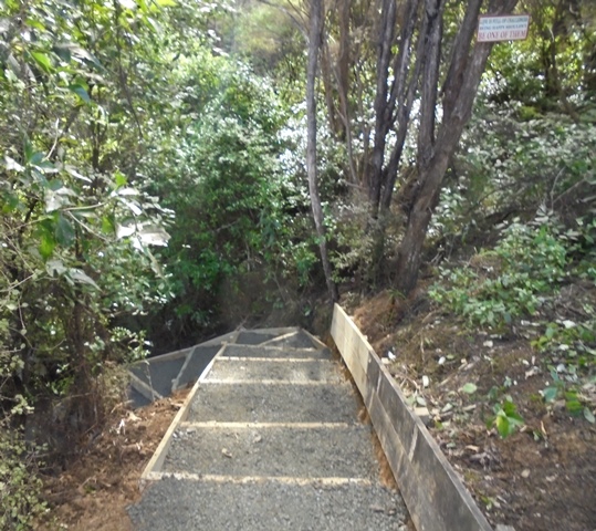 The first track section to fix was a long section of steps that were steep and narrow leading to the DoEHA mosiac. They were also irregular in terms and width and height. The team studied the situation and decided to remove some of the old steps and level the grade and reposition the steps.