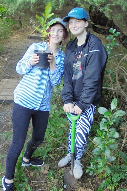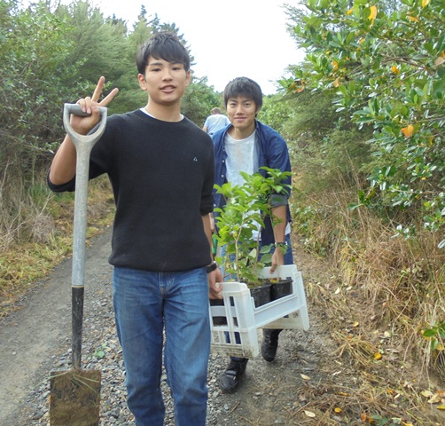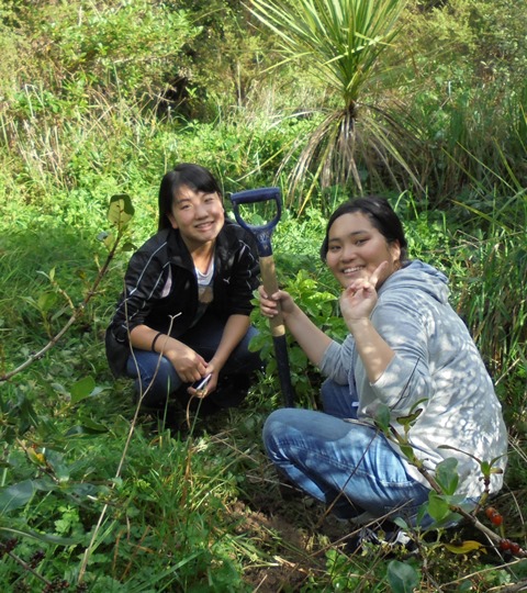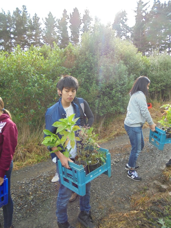 Accompanying the students were teacher Cecilia and friend Stan. Dave from Kiwiana Tours who drove the students out, also volunteered and assisted with the planting today.