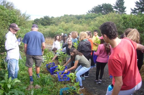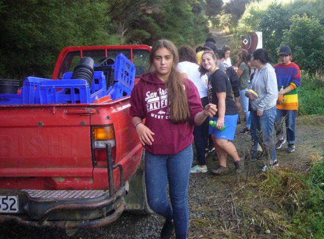 The plan for the day was to plant near the top of the property in areas that had previously been planted with fast growing pioneer trees. We had taken all the plants and spades up to the planting site the day before, and because of the distance, we drove the students up in groups.