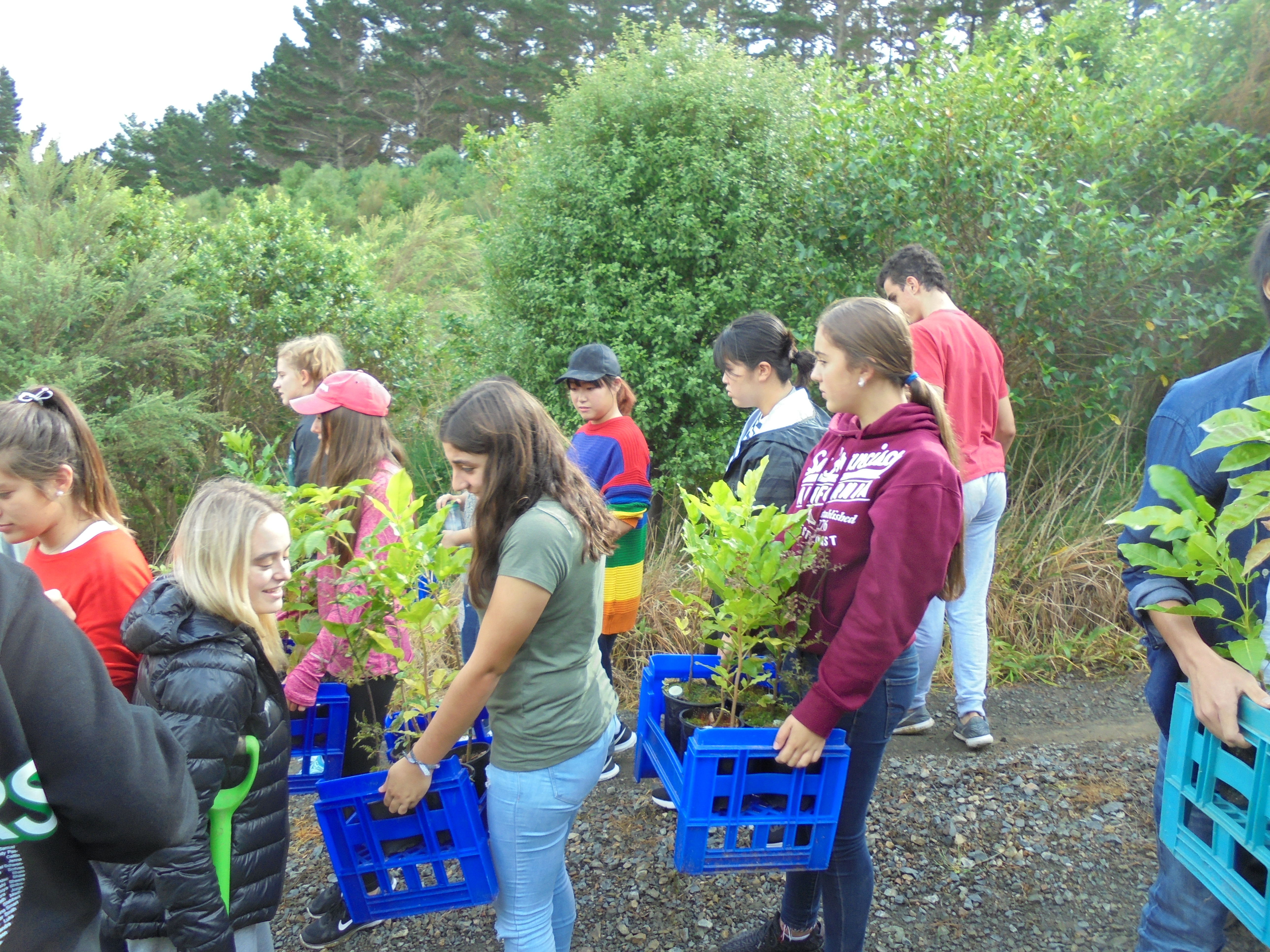 For the fourth year in a row, students in the New Zealand Experience class visited CUE Haven and made their mark on NZ by helping us plant long lived canopy trees such as kohekohe, puriri, rimu, taiarie, tanekaha and totara.