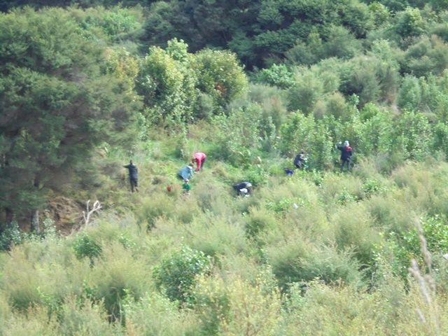 The crates of plants had been previously brought up and the group broke into teams. Each team took a crate and disappeared into the bush to find good planting spots.