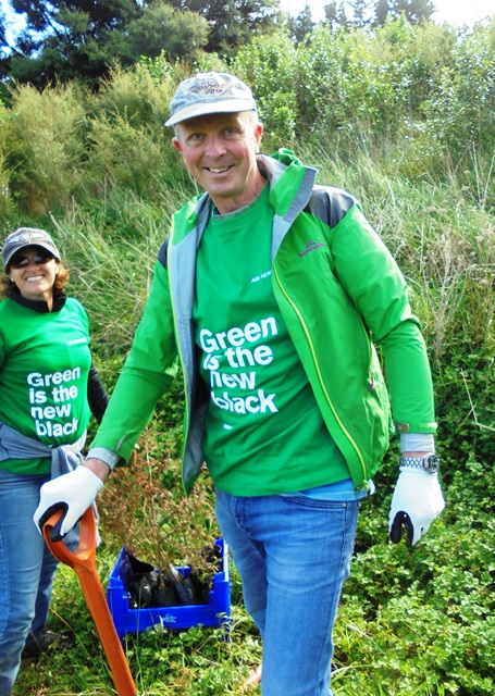 For the fourth year in a row, a great group of Air NZ staff who are also members of the Air NZ Greenteam spent a day a CUE Haven helping out with our planting efforts. It was great seeing old friends and meeting lots of new ones! Many of the Greenteam members brought along family and friends and that contributed to the fun and relaxed atmosphere of the day.