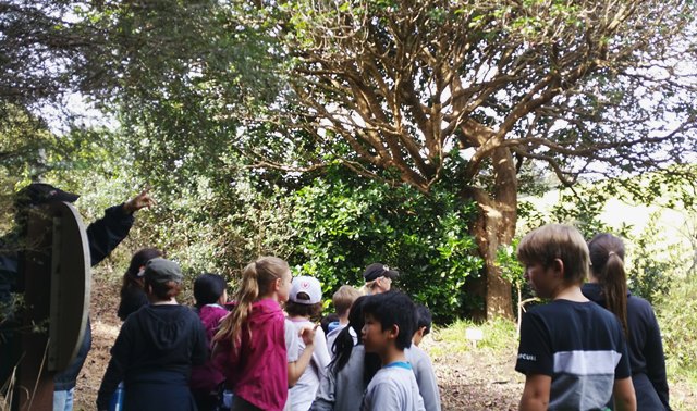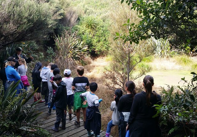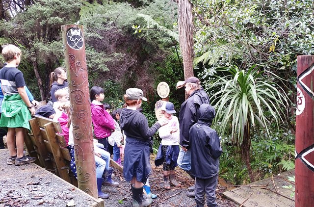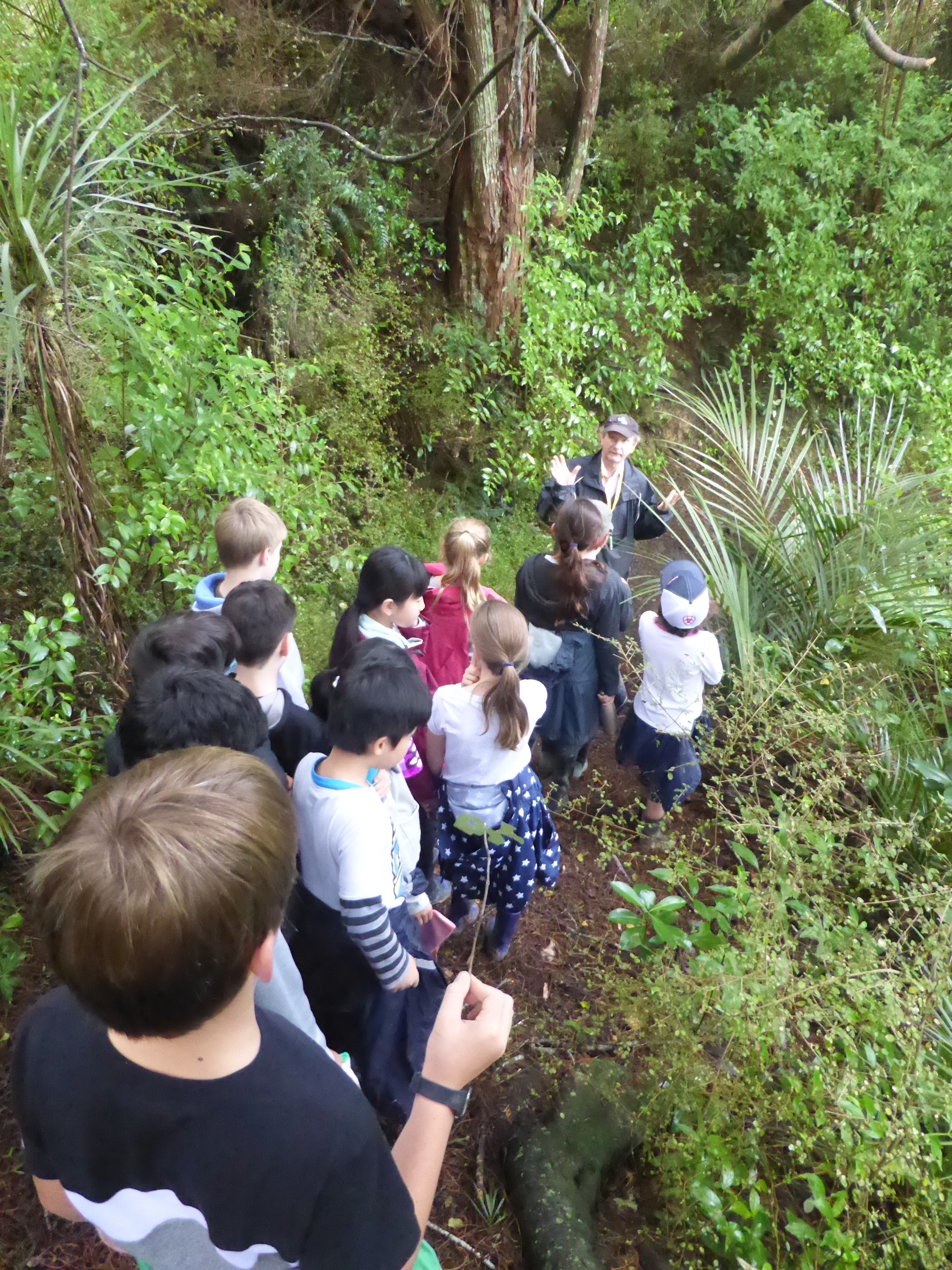 Thomas encouraged the students to continue to walk leisurely and observe nature on the rest of the walk and they enjoyed the company of a couple of friendly piwakawaka (fantails).