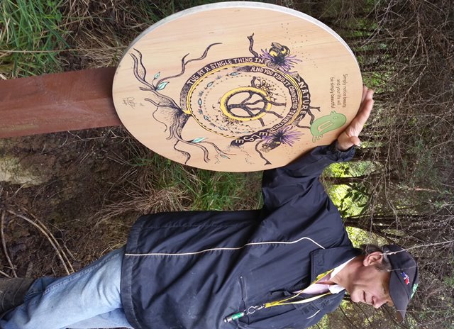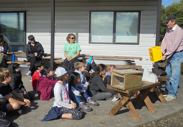 After lunch, Thomas talked a little more about the importance of pest control in protecting both the trees and native birds and animals. He explained some of the challenges that native New Zealand plants and animals faced because of introduced pest plants and animals and described the trapping activities at CUE Haven and demonstrated the tracking tunnels we use to monitor pest populations as well as the traps we use to control them.