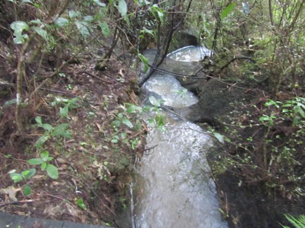 Thomas explained that changing land use alters the way water behaves, mainly by affecting the direction and speed of flow. He pointed out that removing the forest canopy increases the peak flow of water and how the water flow from the open paddocks on the neighbouring properties had contributed to a land slip at CUE Haven.