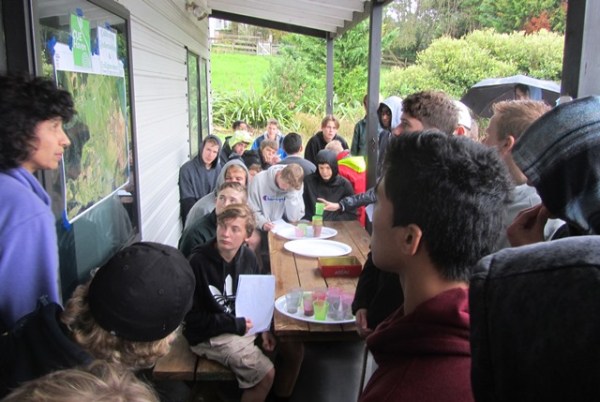 The weather was unusually cold and wet and each group had to deal with showers. It was raining so hard when the last class came on Wednesday afternoon, that we didn’t even get a group photo! And the hot chocolate generously provided by Nestle NZ was much appreciated. Thanks Nestle.