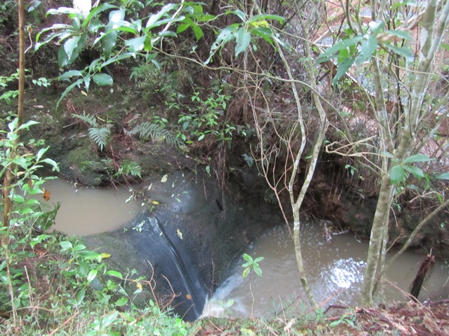 Thomas explained that changing land use alters the way water behaves, mainly by affecting the direction and speed of flow. He pointed out that removing the forest canopy increases the peak flow of water and how the water flow from the open paddocks on the neighbouring properties had contributed to a land slip at CUE Haven.