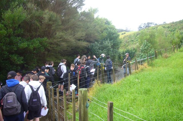 The students’ assignment is to gain an understanding of how different types of land use in the region affect the Kaipara Harbour. Some of the issues are loss of habitat for snapper, seabed sedimentation and erosion. The visit was an opportunity for the students to see first hand how land use directly affects the Harbour and see some of the tradeoffs involved in improving water quality.