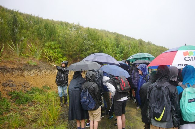 We then walked to the area where the slip occurred in 2016 so the students could see the cause and effect of the slip and how remedial plantings were now helping to stabilize the land.