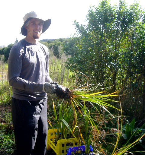 The plants were already on site and we took the short walk to the wetlands. Thomas explained the geography and features of the wetlands and explained some of the challenges rehabilitating the wetlands. He also explained the different kinds of wetland plants.