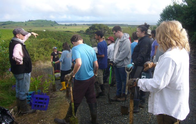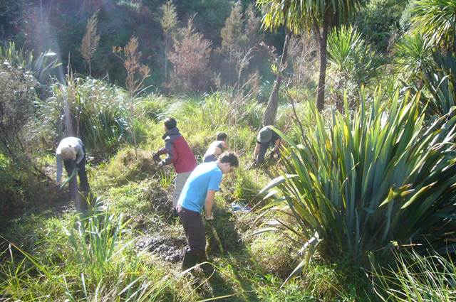 The plan for the day was to do some planting in the wetlands and also plant long lived canopy trees in an area previously planted in 2010. Planting different types of trees in different areas gave the students a wider exposure to New Zealand plants and forest conditions.