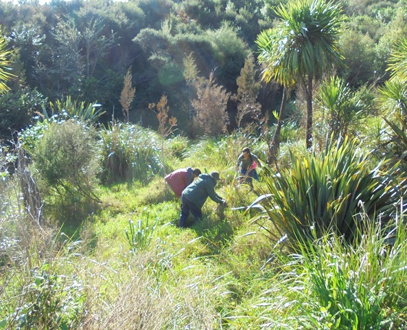 They then went to work, planting the very long living canopy trees – puriri, kohekohe, totara and kaihikatea, amongst the pioneer plantings.