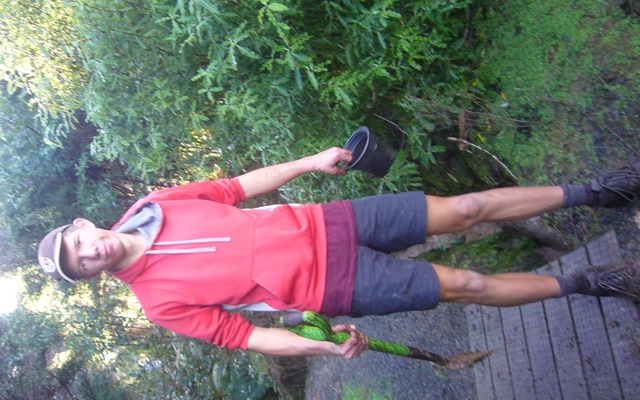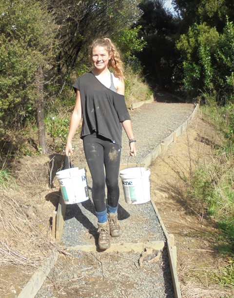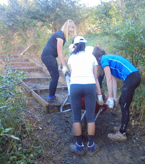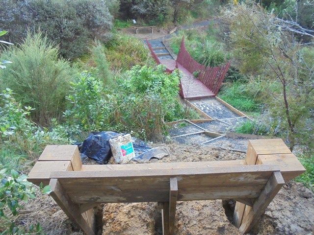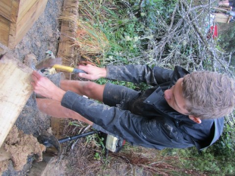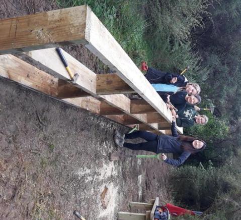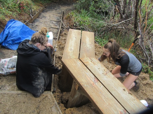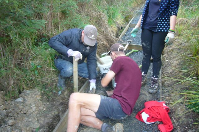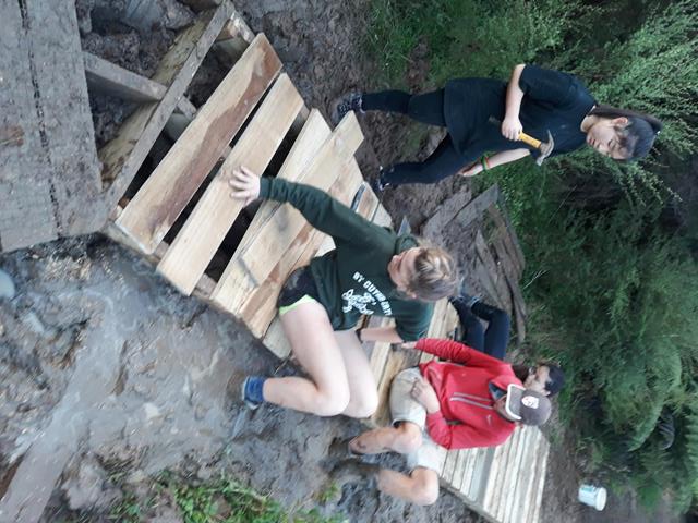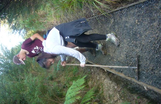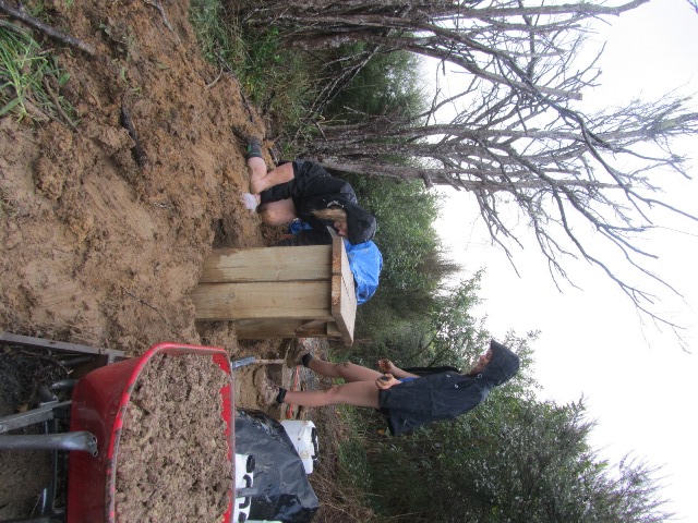 The July residential is always a challenge because it is in the middle of winter when the ground is wet and there is a good chance of rain. As a result, we have to be flexible as to planning and activities. We did have a lot of rain and mud, but the team coped very well. The plan for the week was to do some planting, bench building and a variety of maintenance tasks. The group broke into two teams to tackle different tasks.
