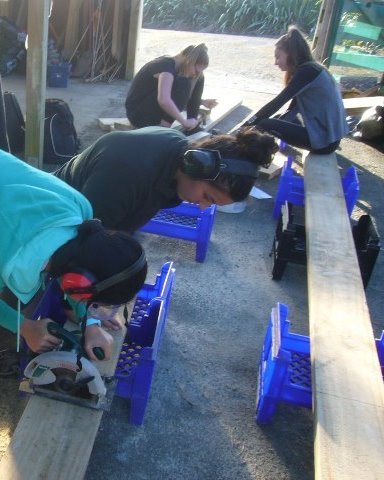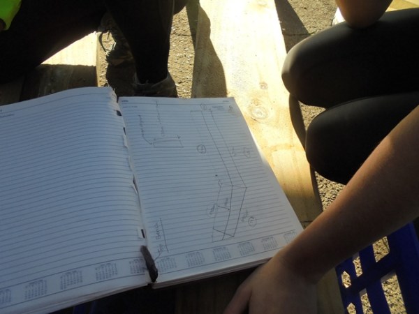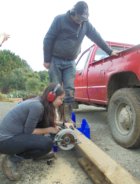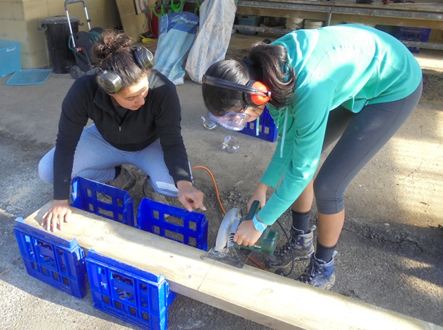 Once the measurements were taken they built the framework. Andy trained and supervised them in the use of power tools to cut the timber.