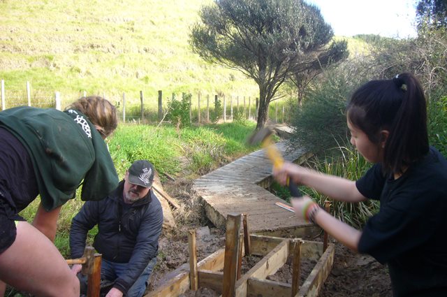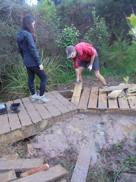 The team decided to reposition a small section of the existing boardwalk and also build a long section to extend the boardwalk.