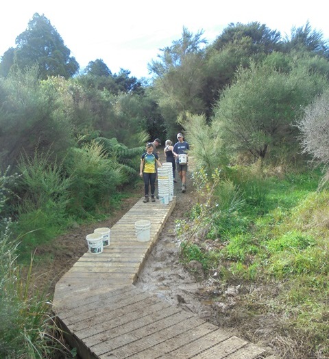 The most ambitious track project the team tackled was to extend the boardwalk on a section of walking track. The unusually heavy rain we have had the past month has made a long section of track virtually impassable and we decided to extend the boardwalk.