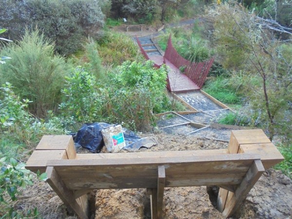 Installation of the second bench also presented challenges. It is on a more sloping section of track so there was a lot of work needed to level the area.