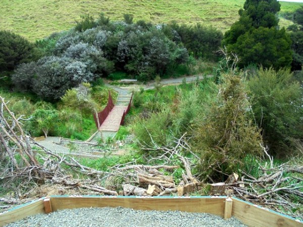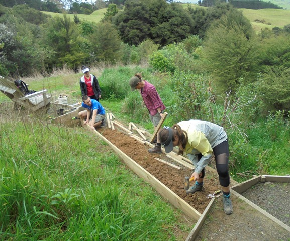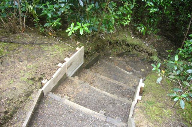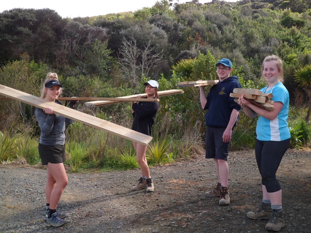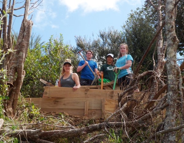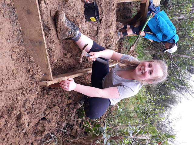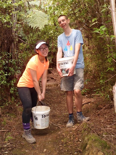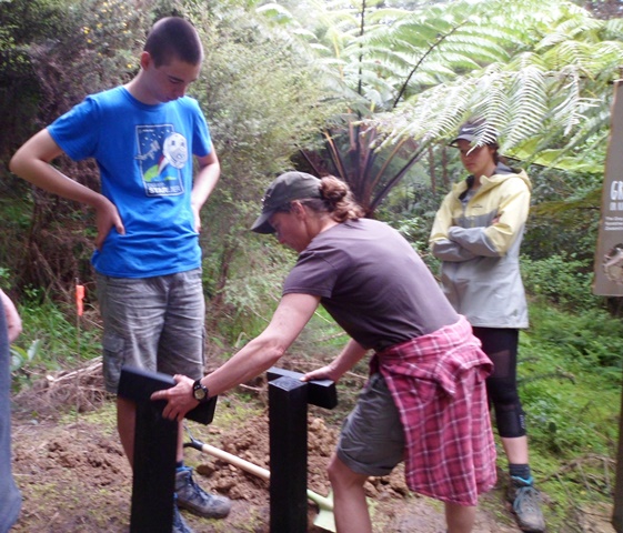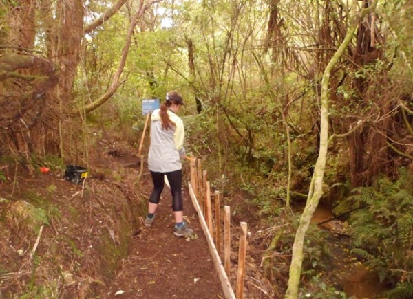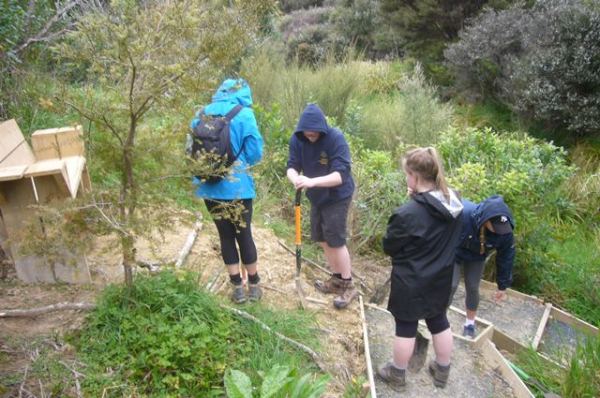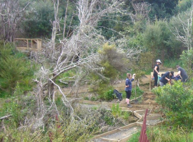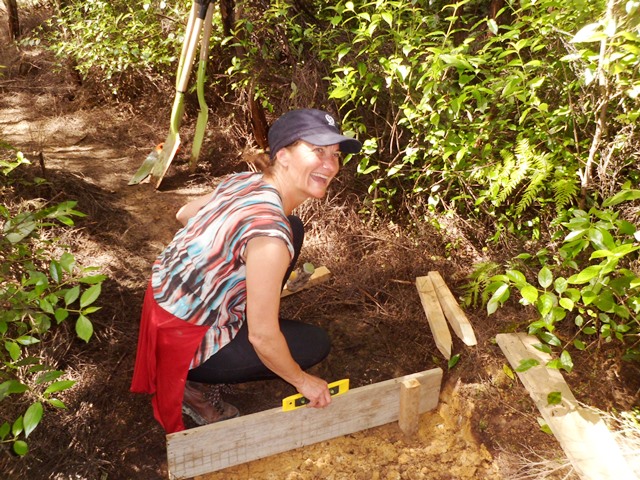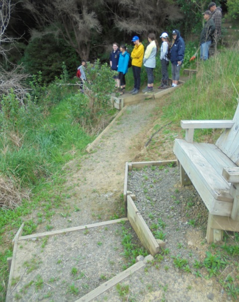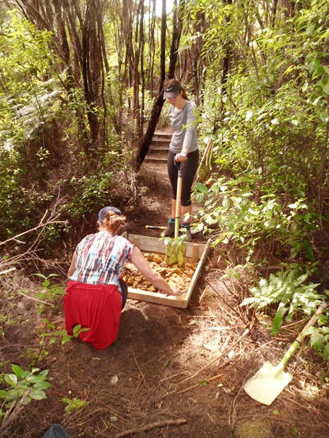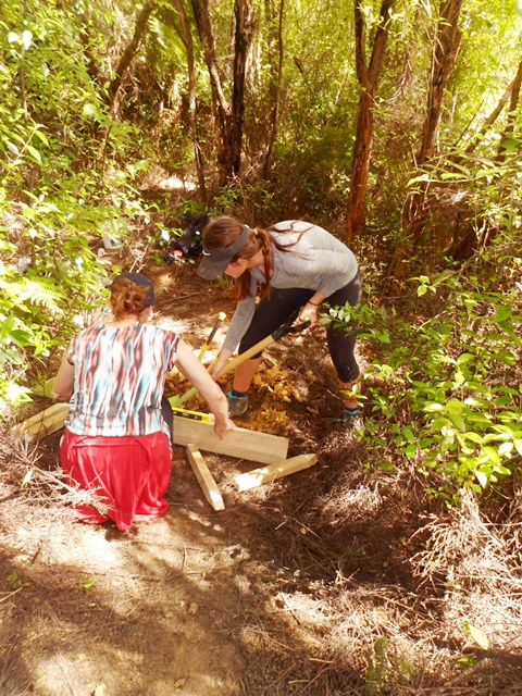The team found a couple of other areas that needed improvement. One section of a track through thick bush has always been soggy and they built a step to make the track less slippery.