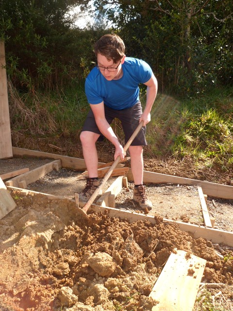And then went down to the shed to cut the timber they needed for the steps and side walls.