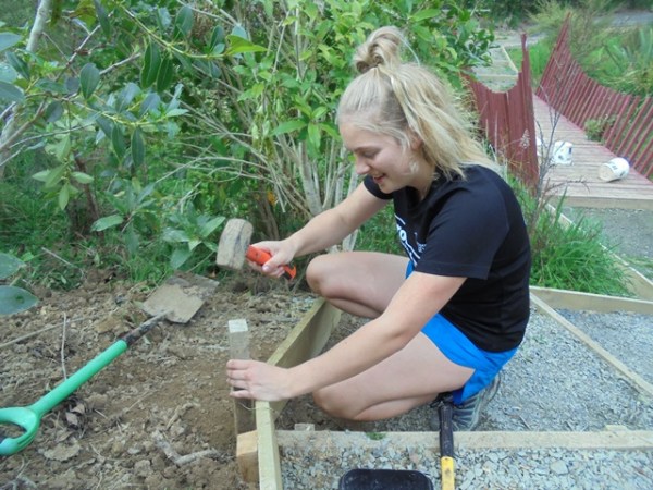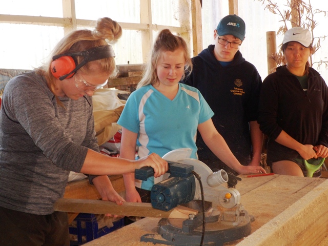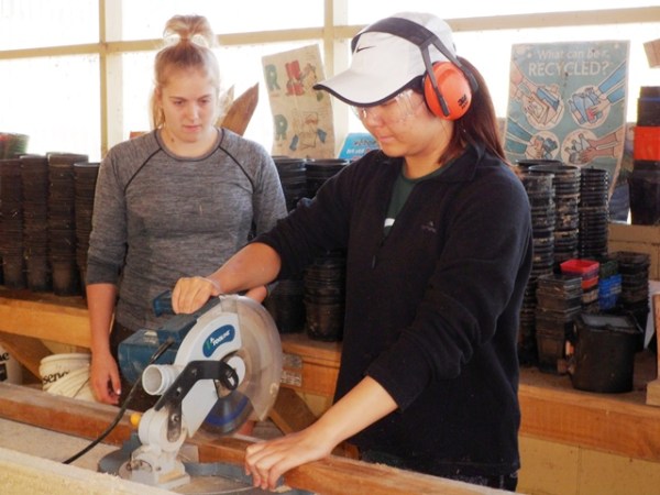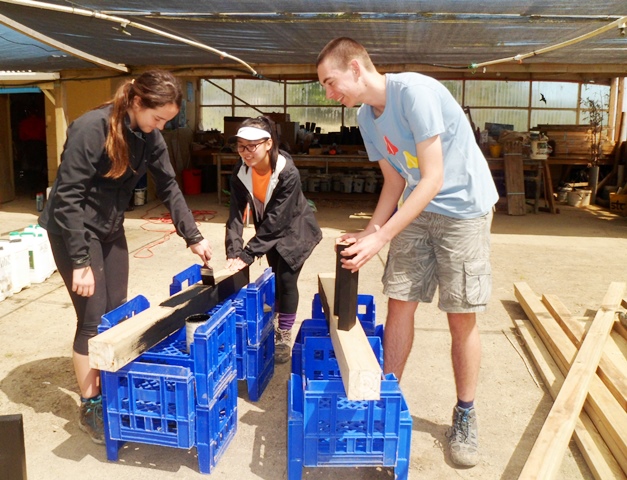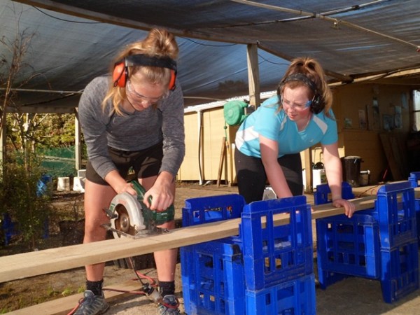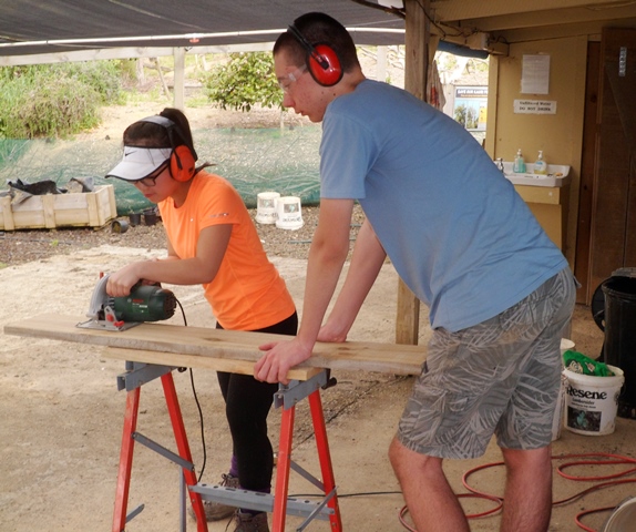 Once they formed the area they cut the needed timber. Andy, Heidi and Thomas trained and supervised the students in the use of the power tools.