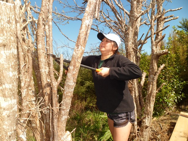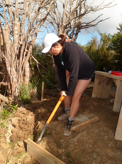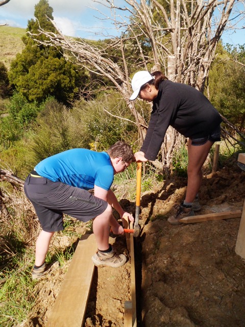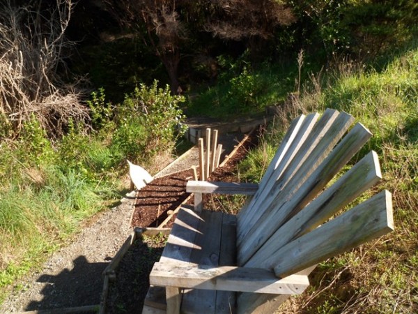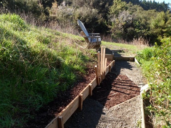 The last task the team tackled was to improve the access path to what we call the fantail chair. The chair was built by a previous DoEHA team and provides great views of the Kaipara Harbour. The back of the chair resembles the spread tail of a fantail. The existing track was showing lots of wear and tear.