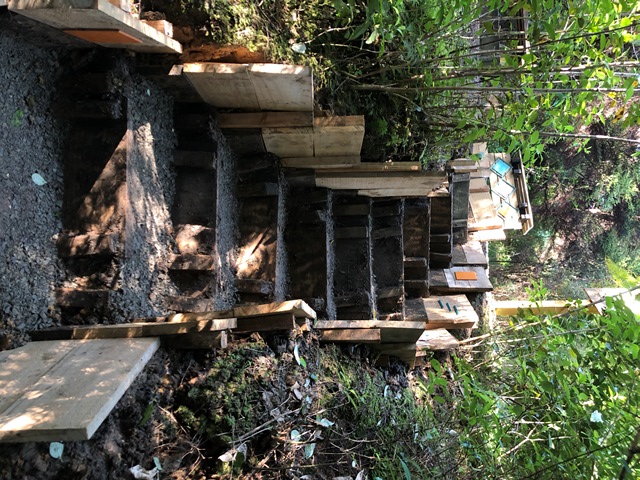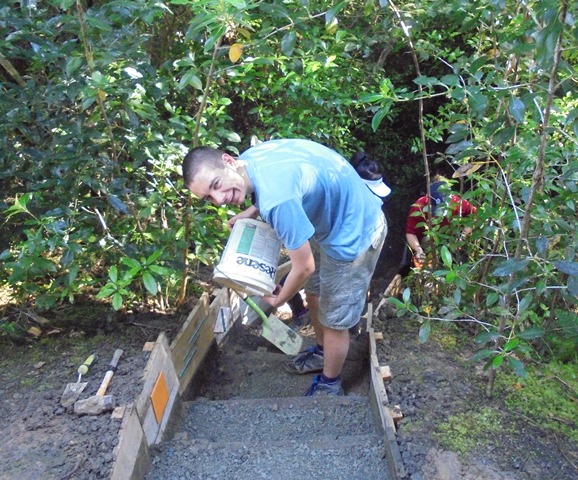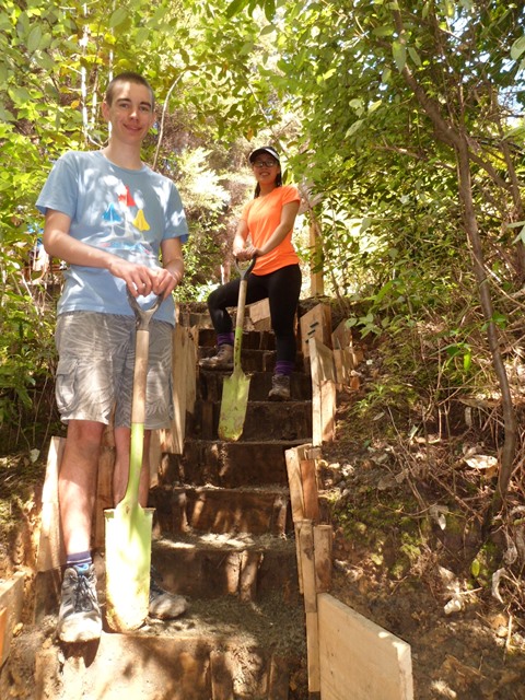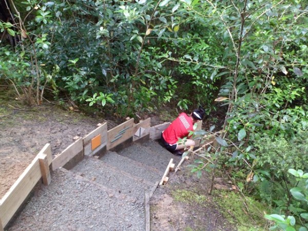 The team went to work, digging out the steps, squaring them off and installing taller side boards to control erosion.