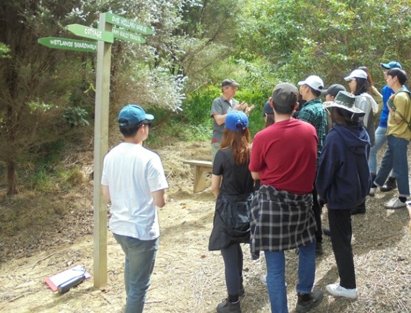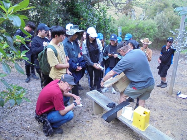 Today lecturers Neil Clarkson and Paul Padfield from the Department of Horticulture & Landscaping Arboriculture, brought out eighteen horticulture students to learn some practical aspects of New Zealand plants and animals, restoration and pest control. The students are all from Korea and are studying at MIT until March, 2019.