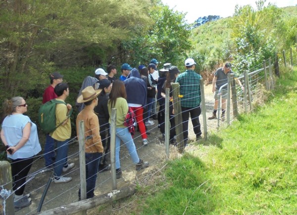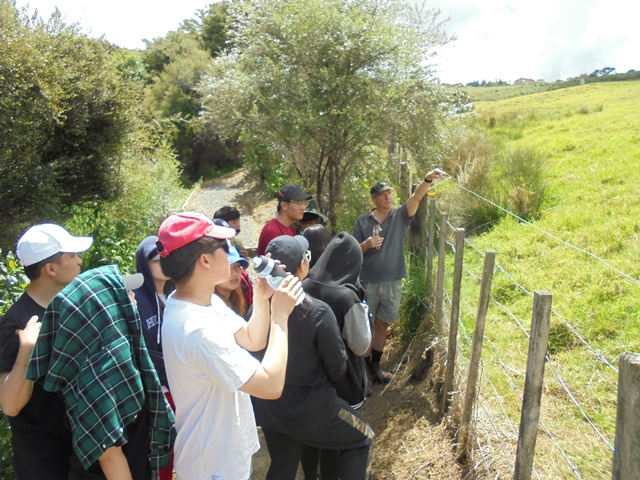 At the top of the property, Thomas also showed them the Kaipara Harbour and the Araparera River so the students could see the connection between the CUE Haven waterways and the harbour and better appreciate how improving water quality at CUE Haven was helping the harbour.