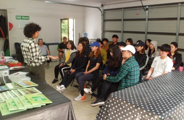 Thomas then took the group for a walking tour of the property. Before starting out, he gave a safety briefing and talked a little bit about what they would see on the walk. He showed them the neighbour’s paddock to give the students an idea of how CUE Haven looked ten years ago and then showed them the 2008 and 2015 plantings so that they could compare the way the trees had grown up.