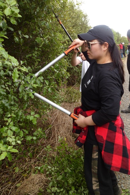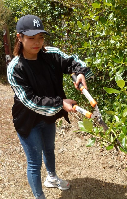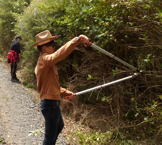 The group came both to learn and to work! They had brought along loppers and secateurs and for the walk back down to the cottage, they trimmed back some of the vegetation growing over the main road.