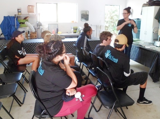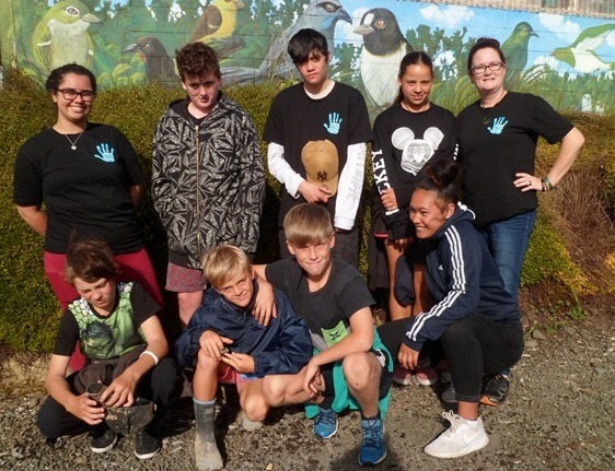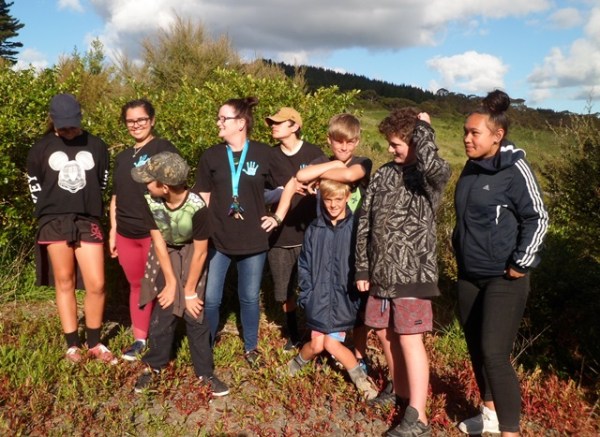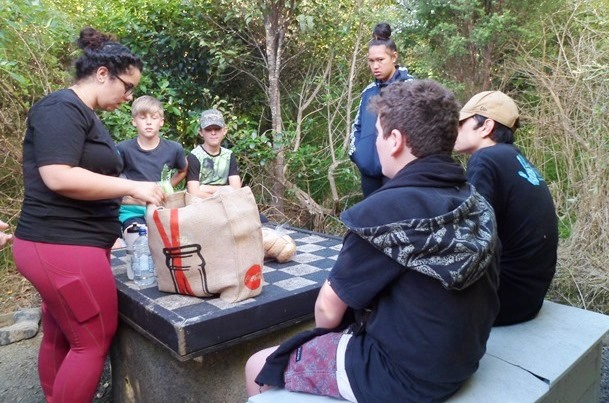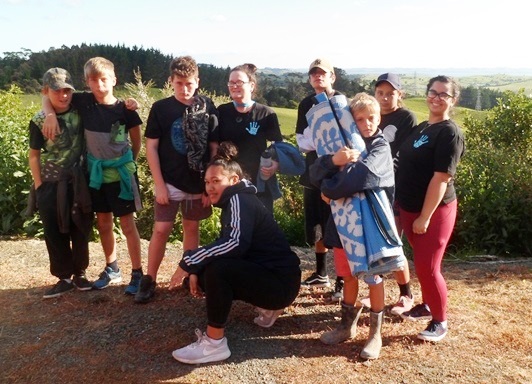Today trustee Jeanette Cummings, senior leader Jacinta, student leaders Dante and Divine from Kaipara College, and students Bayden, Jasmine, Jax, Noah and Toby from Helensville Primary and Parakai School visited CUE Haven for a tour and a picnic dinner to get them started thinking about possible projects.