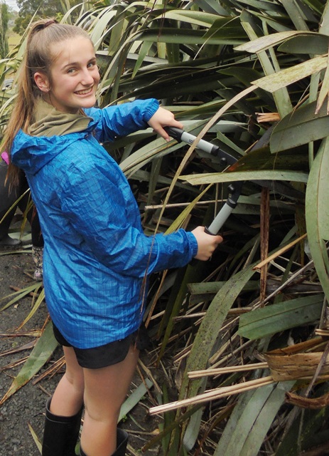 In the meantime, Michelle took another team to trim away some of the flaxes that were growing over the driveway.