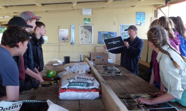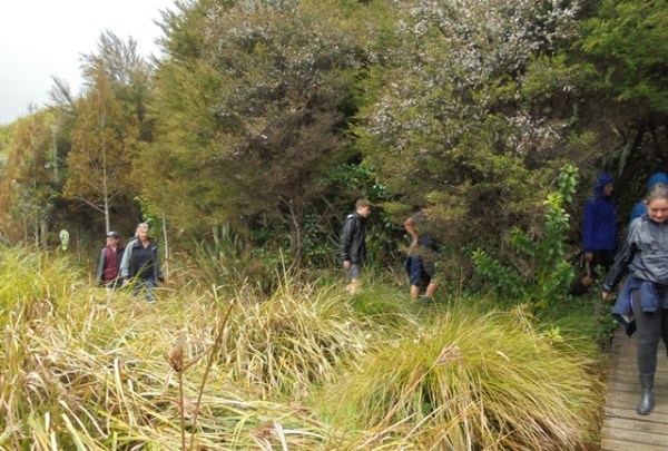 On the walk, Thomas explained the history of the restoration work and showed the students the different planting areas. He explained some of the challenges of weed and pest control and also pointed out the Kaipara Harbour, the neighbouring farms and the Araparera River so that the students could see the impact of different land uses on the landscape and appreciate how water quality in the Harbour is affected by land use. The group also had a chance to see some of the work that other students had done.