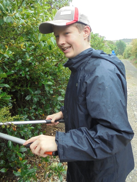 The first task was to trim away some vegetation that was growing over the driveway and main road. Thomas explained the work to be done and gave a safety briefing.