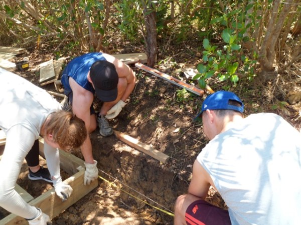 While the digging group worked away, the rest of the team worked on building the framing boxes that form the foundation of the boardwalk.