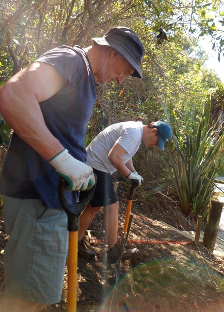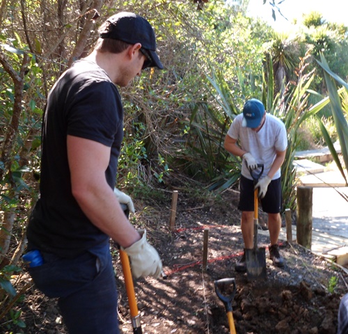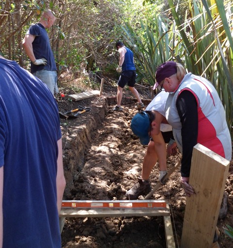 The team decided that digging to create a level boardwalk was the best solution and went to work.