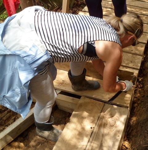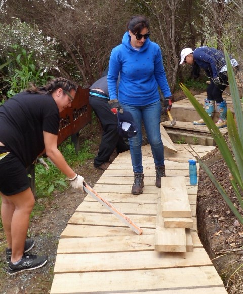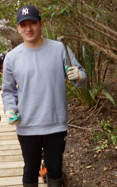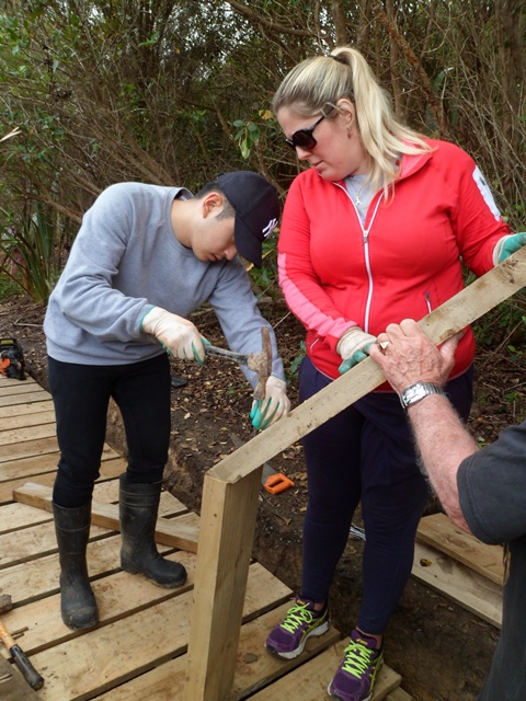 The plan for the day was to continue work on a boardwalk we have been building in the wetlands. The job today was to work at both ends of the new section, joining up the new parts to the existing boardwalk sections.