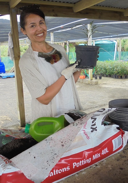 While the boardwalk teams worked away, a couple of staff assisted with some nursery work and repotted some seedlings into bigger pots.