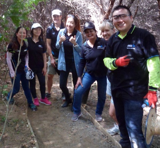 Today another hard working team from ANZ joined us to continue to improve the walking tracks at CUE Haven. This group was made up of executives from the North Shore Retail and Business Banking departments.
