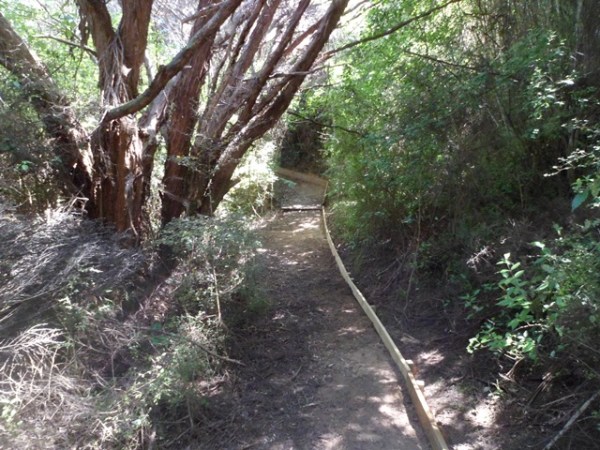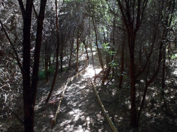 In the meantime, Thomas’s team worked at the other end of the track on a different set of challenges. This section of the track is fairly level, but because of that, the exact layout of the track isn’t always clear and we want to make the path well defined to protect the surrounding vegetation. The solution is to install low sideboards to clearly mark the track and to hold in the gravel we will put down when the track is finished.