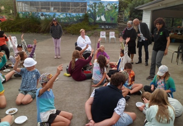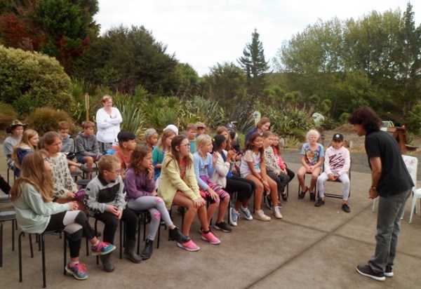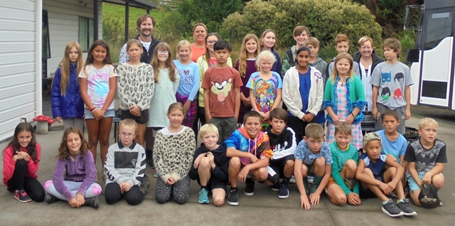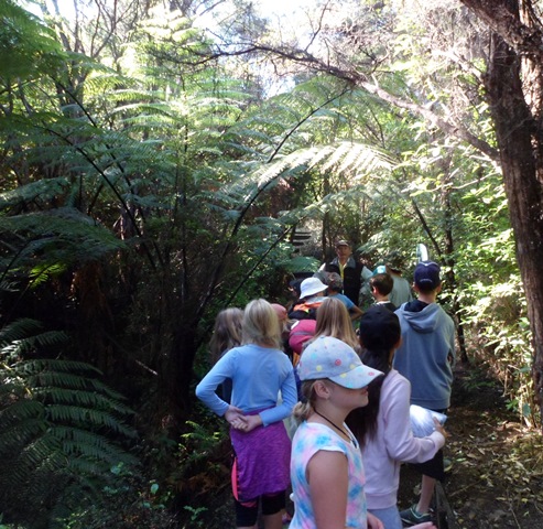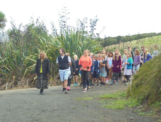 The year 1 – 4 students arrived shortly before the year 5 – 8 students left at 1 pm. The group of 33 students was accompanied by teachers and parents Aleesha, Ayla, Becky, Linden, Lisa, Nicky and Reneé.