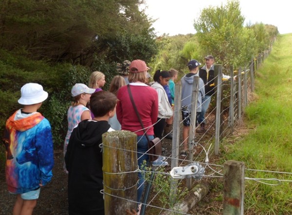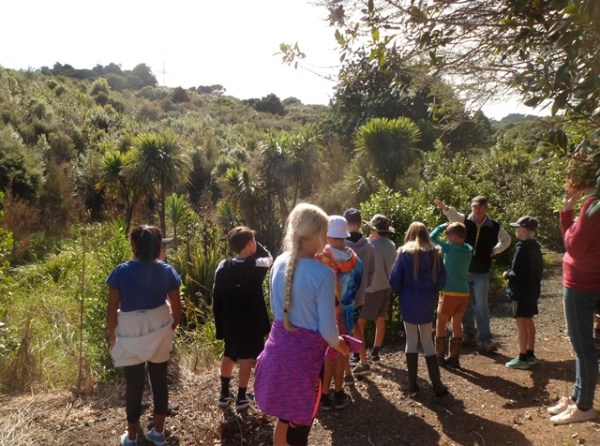 At the end of the track, the students got a chance to describe the things they had seen. Thomas also pointed out the Araparera River and Kaipara Harbour so the students could see the connection between the CUE Haven waterways and the harbour and better appreciate how improving water quality at CUE Haven was helping the harbour.