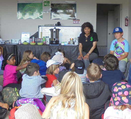 Kuia Kathy gave the students a short talk about kaitiakitanga and reminded the students of the importance of taking care of and protecting our natural resources, and told the groups that we all had a responsibility to be kaitiaki (guardians) of our planet.