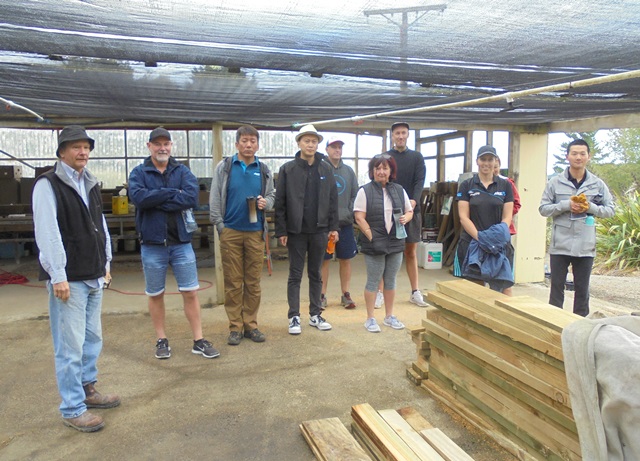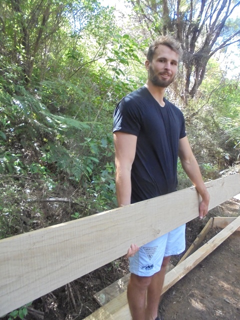 The plan for the day was to continue to work installing side boards and retaining walls on a long section of track. There were a number of unusual challenges with the work today and before we went up, the team had a look at the different kinds of timber available in the shed that they could use for solutions to some of the track issues we would be working on.