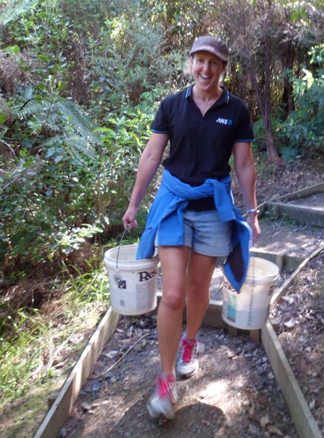 The buckets were loaded onto the ute and driven up to the end of the track.