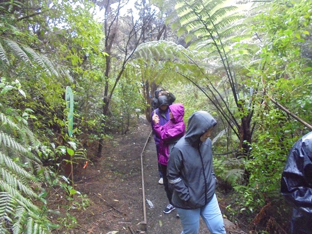 We carried on almost to the top of the property with frequent stops along the way to observe various aspects of the regenerating bush. We took a small detour to see the Maori rock pools which are evidence of past human habitation on this site.