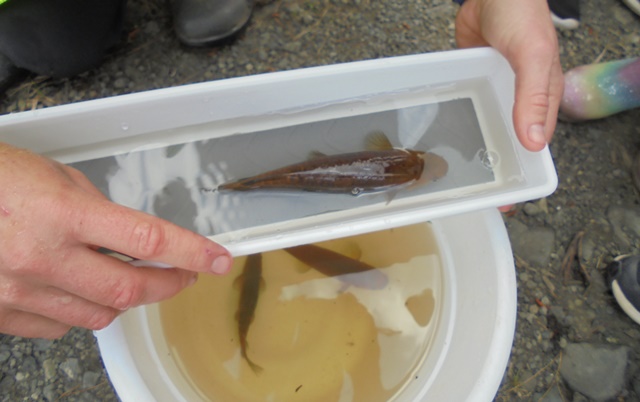 We were very happy to see that we had caught three big banded kokopu, a native New Zealand galaxid fish.