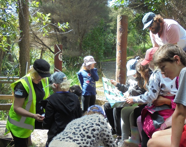 Our friend, Rita, from Te Aroha Pa marae, teaches Maori culture at the Ahuroa School and knew the students and stopped in briefly for a visit and led the group in a short karakia before morning tea.