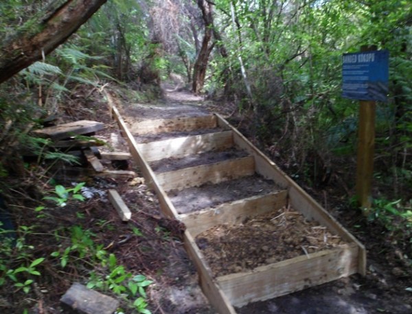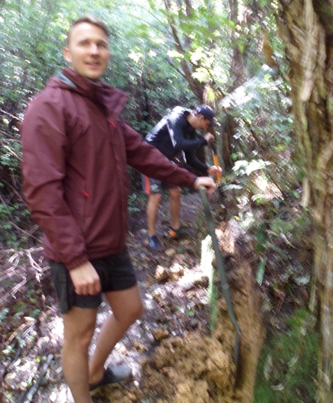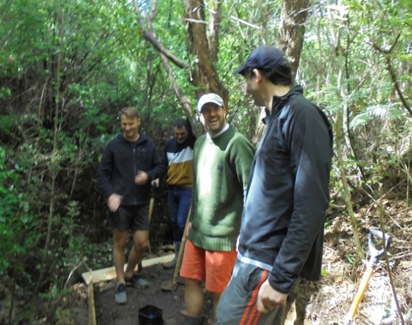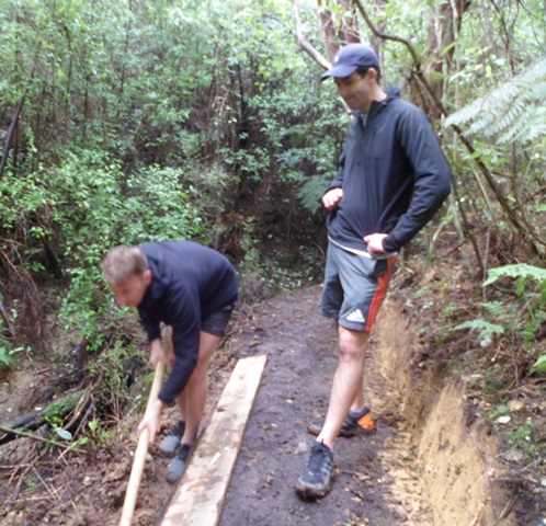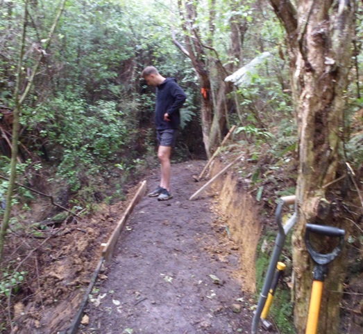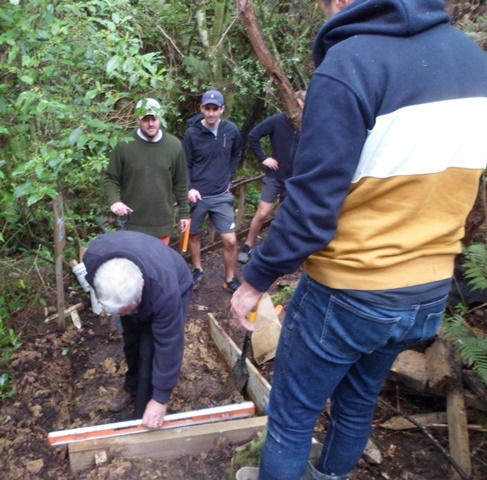 We broke into two teams. Sam and Simon worked with Alan on the steps and Mark and Rob worked on widening and retaining the track.